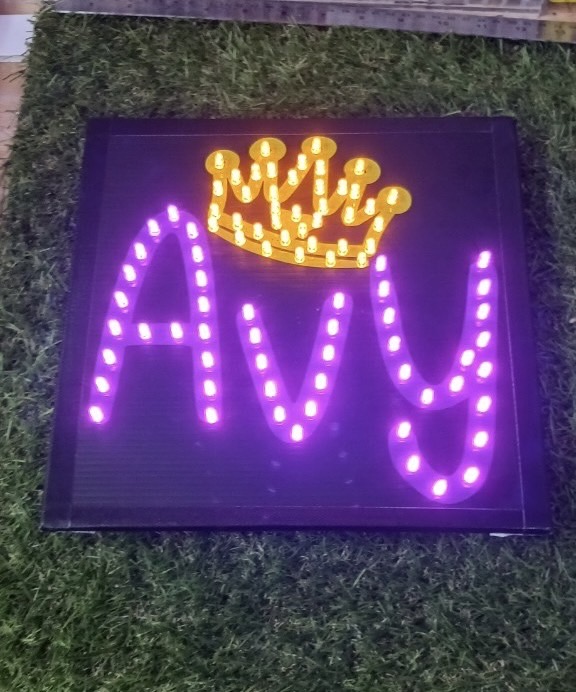 ป้ายไฟเชียร์ ขนาด 25x25cm แสงไฟสีม่วง , สีเหลืองทอง